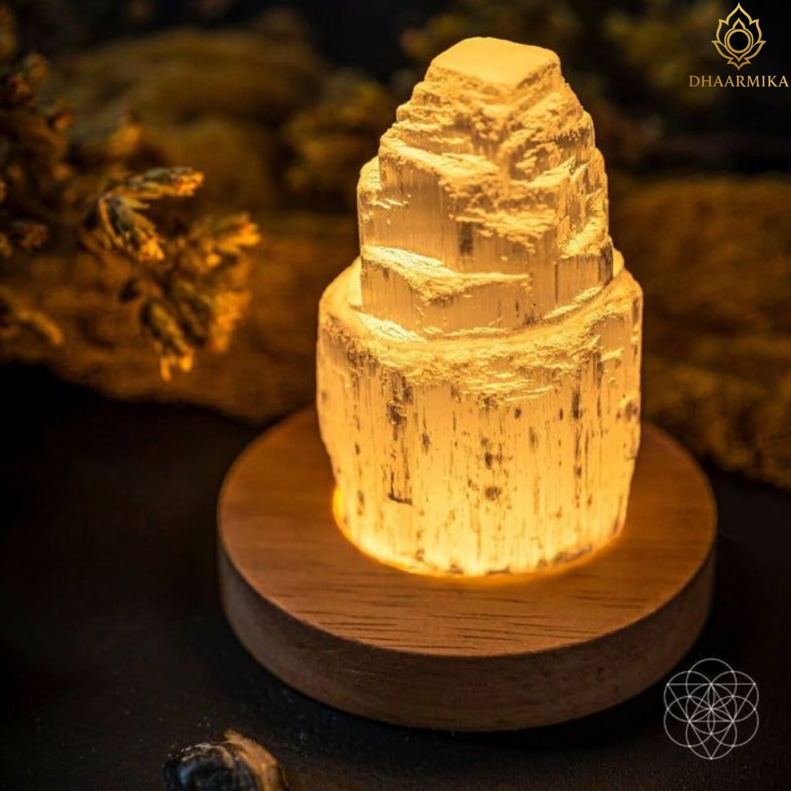 Selenite Lamp attracts positive energy, clears blockages,